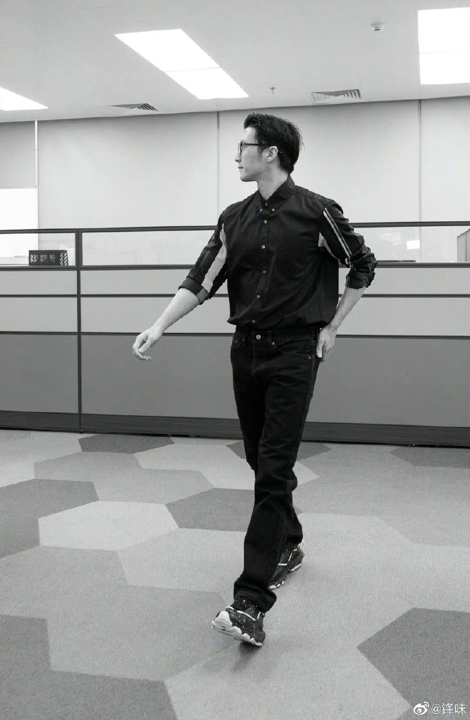 网友晒与杨洋《我的人间烟火》片场合影,五官精致,对镜比耶帅气十足。