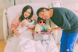 张柏芝身穿白色外套,推着儿童车,带着小王子逛游乐场,小王子在镜头中手舞足蹈,十分可爱。