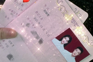 有网友曝光了球球和小陈领证现场照,球球穿着咖色V领毛衣,梳着丸子头,额头光亮、发际线圆润。