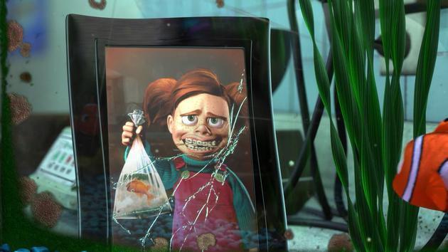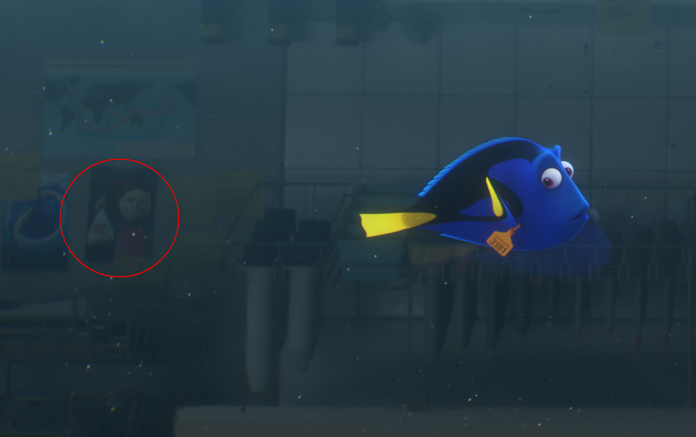 说到鱼缸帮,不能不提牙医的小侄女Darla。这个鱼见鱼怕的小女孩,出现在了海洋生物研究所疗养区的墙上,也就是多莉和章鱼汉克第一次见面的场景里。