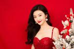 景甜穿红色吊带碎钻裙