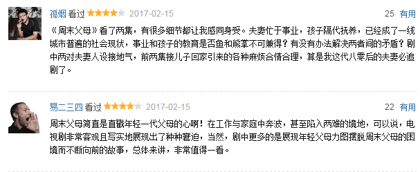 给四星、五星的理由,多集中在周末父母的话题确实反映了现实问题。