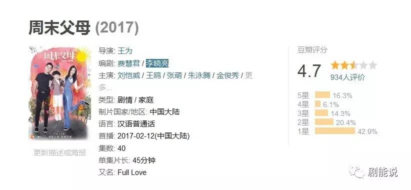 下面想说点儿题外话,《周末父母》播出18集,豆瓣评分4.7。
