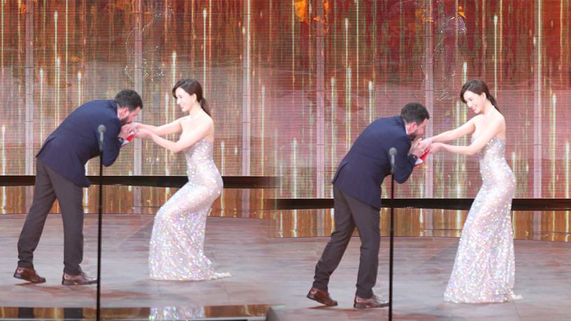 嘴皮子倍溜儿的黄渤在介绍佟丽娅表演时竟然出现口误,将“佟丽娅”说成“佟娅丽”。[详情]