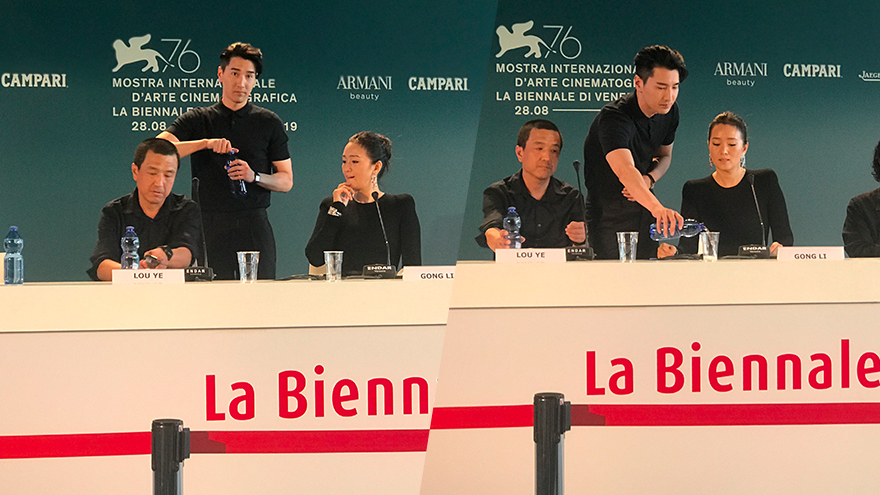 新浪娱乐讯 9月4日,《兰心大剧院》威尼斯电影节发布会,导演娄烨携主演巩俐、赵又廷、小田切让等亮相,开场时赵又廷贴心地给巩俐倒水。(摄影/梵一)[详情]