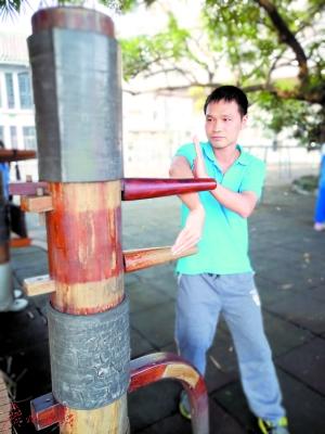 姚氏咏春拳,又称蛇形咏春,是佛山咏春三雄之一的姚才所传。“初学的时候非常勤奋,基本上完课后每天都去武馆等开门。”陈启智说,练习咏春五年时间,拳法拳理套路已经精通,有了一定的实战能力。练习咏春后,陈启智老师被学校选为佛山一中武术社的负责人,从2012年开始便在校内给有兴趣的学生传授咏春技法。从此,他除了数学老师的身份外,还多了一个“武术师傅”的身份。“学生们看了电影叶问,对练习咏春也很有兴趣,这些年教过的学生可能有接近百人吧。”陈启智说,通过真正拳法课堂教授,学生们了解到更加真实的咏春,和影视作品里面经过艺术加工的咏春是有不同的。