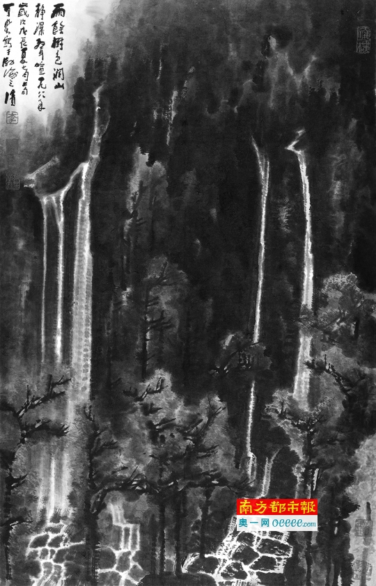 李可染《山静瀑生喧》,92.5x58.5cm,1988年。