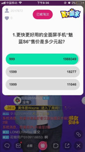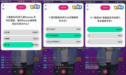 当晚,魅蓝手机专场出题官李楠一上来就狂甩送分题,“更快更好用的全面屏手机魅蓝S6售价是多少元起?”这题对于魅蓝的粉丝来说,简直就是送钱题了!而对于一般的网友们来说,就是一颗大大的安利啊!又快、又好、还是全面屏手机,售价才999元起,网友们纷纷飘弹幕表示:“这颗安利我吃了”、“全面屏只要999元,题都不答,我要去买手机了”!