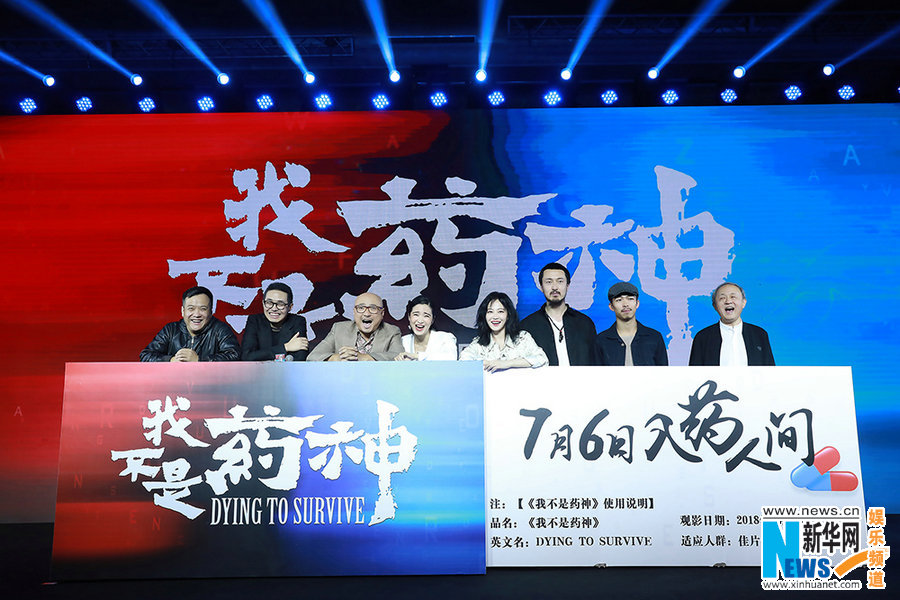 4月12日,电影《中国药神》在北京举行发布会并最终正式更名为《我不是药神》。经过漫长后制阶段,该片将于2018年7月6日全国上映,和观众见面。发布会上,导演文牧野,监制宁浩,监制兼主演徐峥,主演王传君、谭卓、章宇、杨新鸣,特别出演龚蓓苾悉数亮相。活动现场公布了先导预告和一组“开颜迎客”版海报,揭开影片神秘面纱,让人提前一睹影片气质。影片中以徐峥为首的“治愈小队”集结亮相,反差颠覆造型颇为抢眼。作为“坏猴子72变电影计划”的又一力作,《我不是药神》将是树立全新类型片标准的品质之作。宁浩徐峥联手文牧野的新组合表示,此次将会以招牌式的黑色幽默元素融合升级,打造社会英雄题材类型,让《我不是药神》成为今年暑期不负期待的作品。