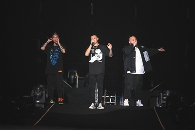 新京报记者在小巨蛋后台见到了顽童MJ116,不似舞台上嚣张霸气的模样,三位成员私底下其实十分随和健谈。他们聊起了大陆正火的《中国新说唱》,也谈了谈台湾嘻哈音乐的传承。